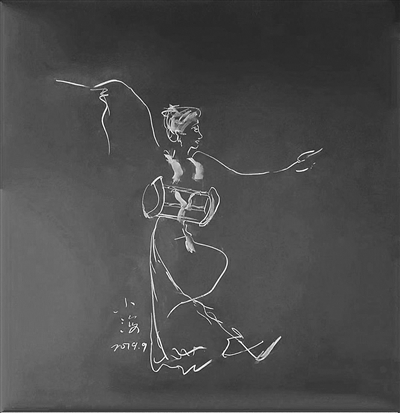 揚(yáng)子晚報(bào)記者注意到,這些用“數(shù)學(xué)語(yǔ)言”繪成的粉筆畫,有修長(zhǎng)的女子,有年邁的老人,有頑皮的孩童,有淘氣的小貓;從動(dòng)作上看,有的在遠(yuǎn)望,有的在賞花,有的在舞蹈,有的在拉琴,有的在采摘,有的在打球,有的在觀察小蟲;從色彩上看,有的只有白色或粉紅色一種顏色,有的有兩種顏色,但不超過(guò)三種顏色。無(wú)論是一種顏色還是有限的兩三種顏色,作品都生動(dòng)傳神,幾條柔和的曲線稍作組合,寥寥數(shù)筆,就賦予了作品生命力,顯示了作者嫻熟高超的繪畫技巧。每幅畫的角落,有的還寫上了“童趣”、“采摘”、“風(fēng)雨歸來(lái)”、“運(yùn)動(dòng)美”的標(biāo)題,每一幅畫都署名“小海”,行書字體也和畫面一樣流暢靈動(dòng)。年近花甲的朱老師以“小”自稱,體現(xiàn)了他率真謙虛的性格和對(duì)工作的態(tài)度。