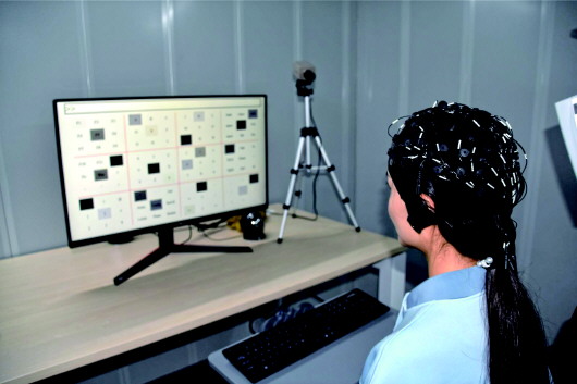在天津大學(xué)的實(shí)驗(yàn)室里,實(shí)驗(yàn)員用“意念”進(jìn)行“隔空打字”。 記者宋瑞攝