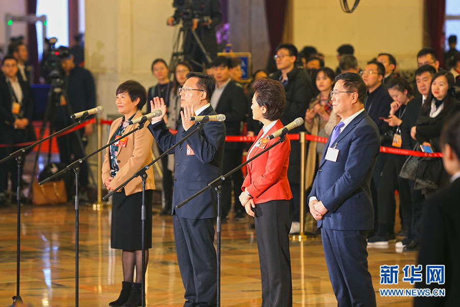 全國政協(xié)十三屆二次會議于3月3日下午3時在北京人民大會堂開幕。新華網(wǎng)、中國政府網(wǎng)進(jìn)行現(xiàn)場直播。圖為全國政協(xié)委員接受采訪。新華網(wǎng)/中國政府網(wǎng)?劉廈 攝