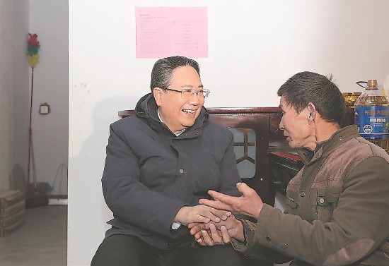 2月2日,安徽省委書(shū)記李錦斌深入六安市金寨縣花石鄉(xiāng)大灣村村民陳澤申家中走訪慰問(wèn),與他親切交談。記者 徐國(guó)康 攝? 來(lái)源:安徽日?qǐng)?bào)