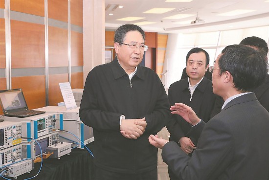 2月20日,安徽省委書(shū)記李錦斌來(lái)到中建材蚌埠玻璃工業(yè)設(shè)計(jì)研究院,在展示大廳參觀蚌埠市科技創(chuàng)新代表性企業(yè)產(chǎn)品。記者 徐國(guó)康 攝? 來(lái)源:安徽日?qǐng)?bào)