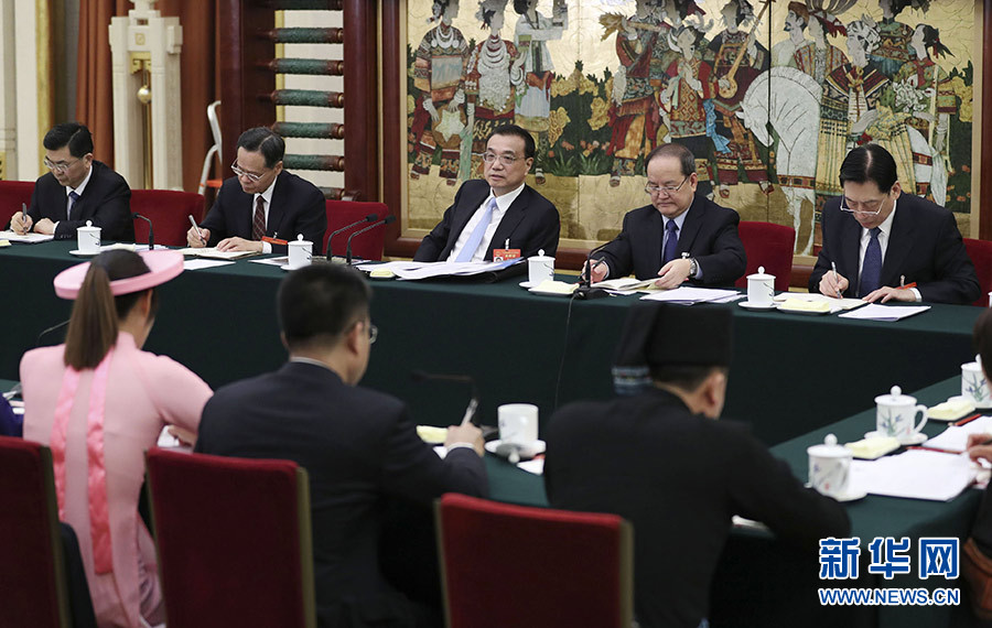 3月6日,中共中央政治局常委、國務(wù)院總理李克強(qiáng)參加十三屆全國人大二次會議廣西代表團(tuán)的審議。 新華社記者 丁林 攝
