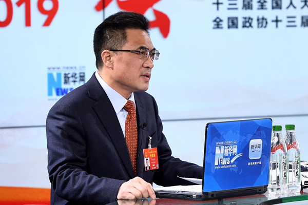 3月6日,全國人大代表、四川省生態(tài)環(huán)境廳黨組書記、廳長于會文作客新華網(wǎng)2019全國兩會特別報(bào)道。新華網(wǎng) 李相博 攝