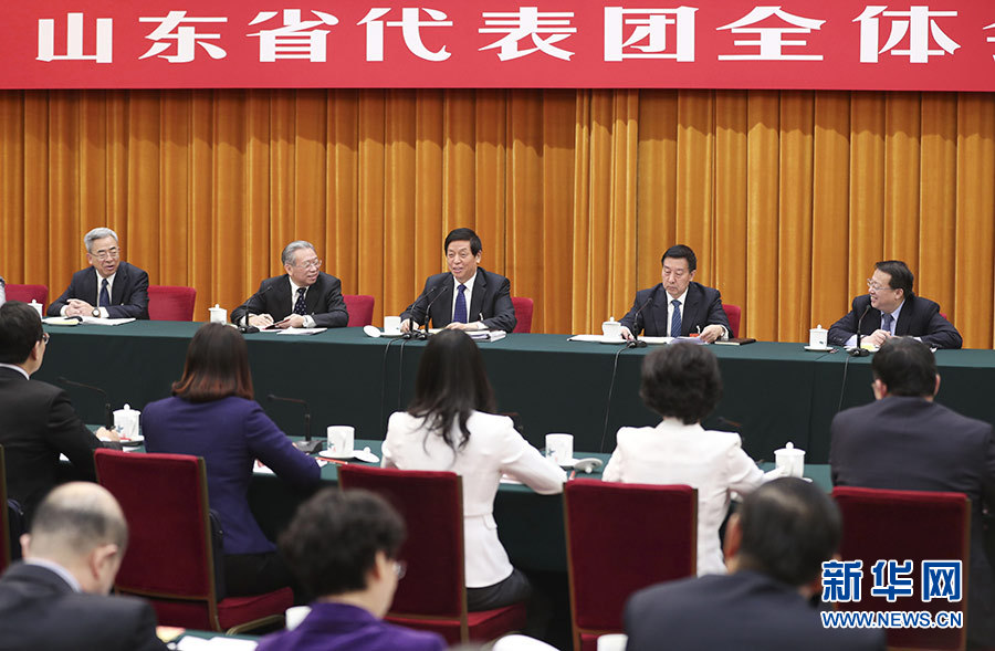 3月7日,中共中央政治局常委、全國(guó)人大常委會(huì)委員長(zhǎng)栗戰(zhàn)書(shū)參加十三屆全國(guó)人大二次會(huì)議山東代表團(tuán)的審議。 新華社記者 丁林 攝