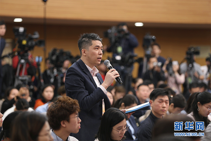 十三屆全國(guó)人大二次會(huì)議新聞中心3月9日(星期六)10時(shí)30分在梅地亞中心新聞發(fā)布廳舉行記者會(huì),邀請(qǐng)商務(wù)部部長(zhǎng)鐘山、副部長(zhǎng)兼國(guó)際貿(mào)易談判副代表王受文、副部長(zhǎng)錢克明就“促進(jìn)形成強(qiáng)大國(guó)內(nèi)市場(chǎng) 推動(dòng)全方位對(duì)外開放”相關(guān)問題回答中外記者提問。圖為中國(guó)日?qǐng)?bào)記者提問。新華網(wǎng)/中國(guó)政府網(wǎng) 劉廈 攝