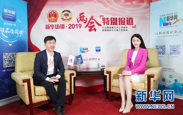 全國(guó)政協(xié)委員王小川接受新華網(wǎng)專訪。新華網(wǎng) 王翰林 攝