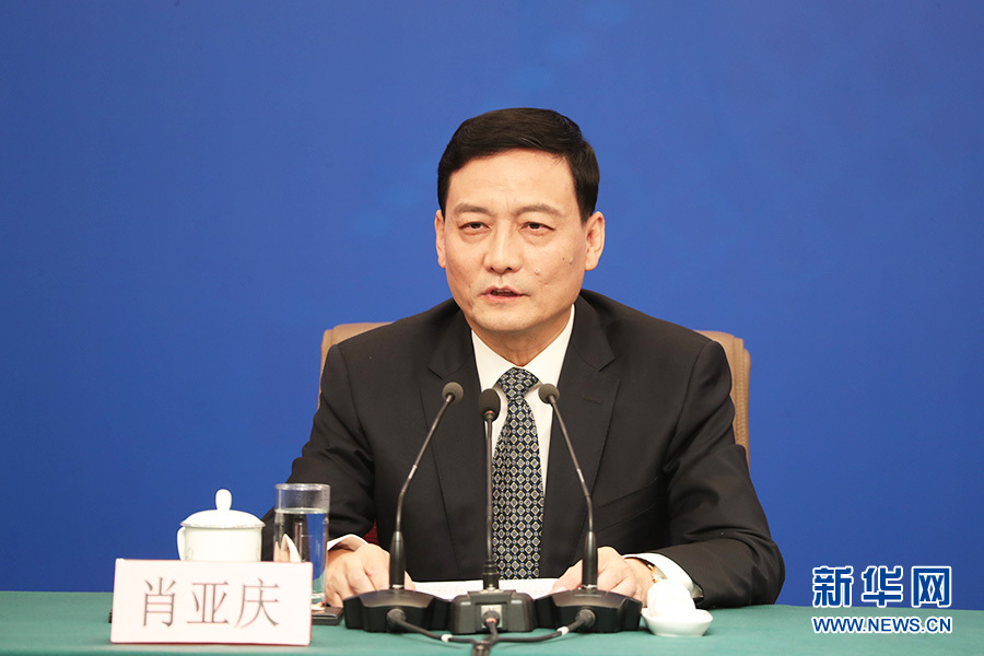 十三屆全國人大二次會議新聞中心3月9日(星期六)15時在梅地亞中心新聞發(fā)布廳舉行記者會,邀請國務院國資委主任肖亞慶,副主任翁杰明,秘書長、新聞發(fā)言人彭華崗就“國有企業(yè)改革發(fā)展”相關問題回答中外記者提問。圖為肖亞慶回答記者提問。新華網/中國政府網 陳杰 攝