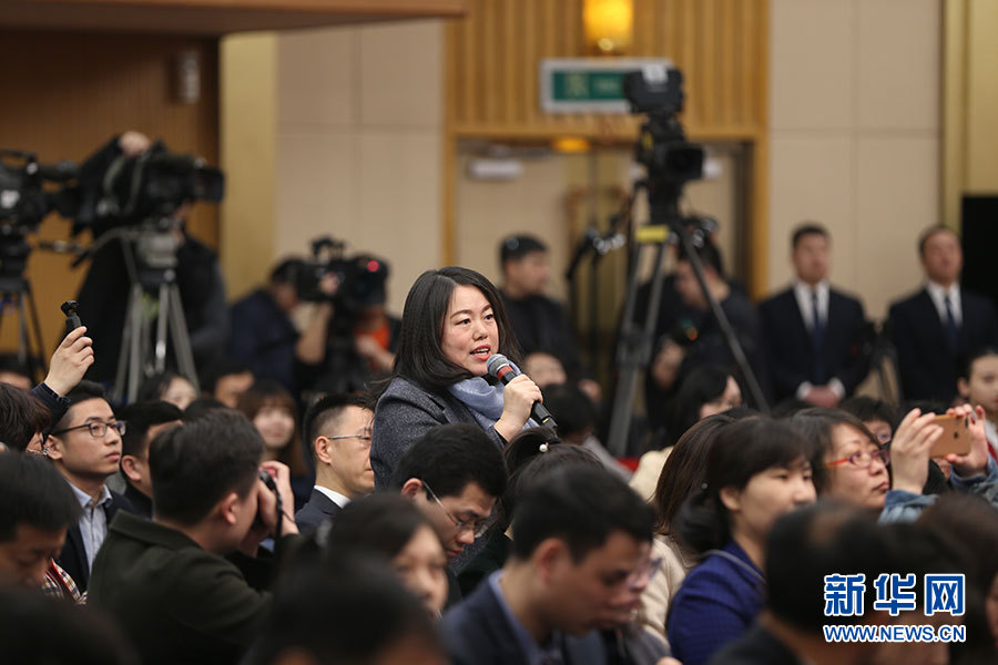 全國政協(xié)十三屆二次會(huì)議3月10日(星期日)上午8:45在梅地亞兩會(huì)新聞中心舉行記者會(huì),邀請5位政協(xié)委員就“新時(shí)代政協(xié)履職”回答記者提問。新華網(wǎng)、中國政府網(wǎng)進(jìn)行現(xiàn)場直播。圖為香港經(jīng)濟(jì)導(dǎo)報(bào)記者提問。新華網(wǎng)/中國政府網(wǎng) 劉廈攝