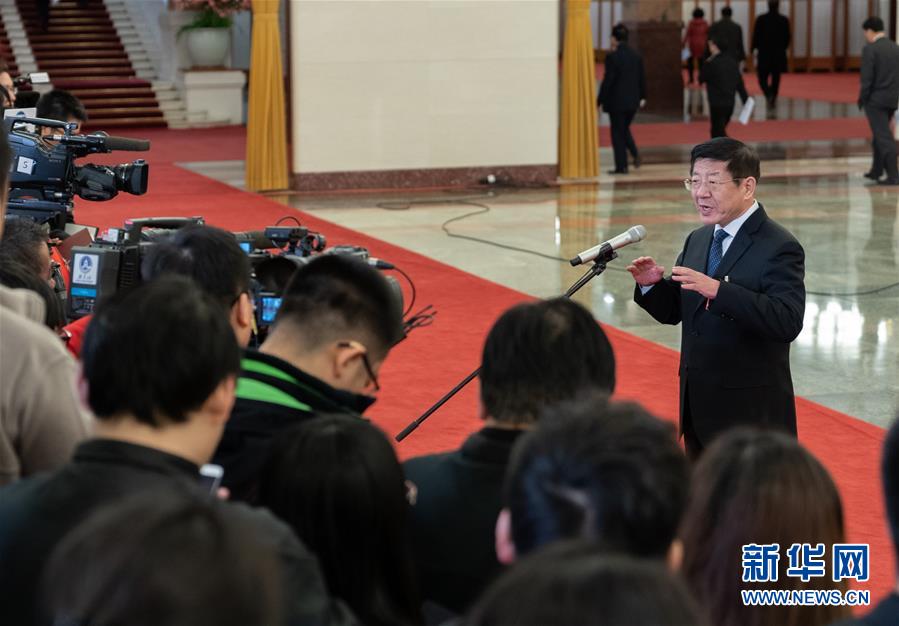 3月12日,十三屆全國人大二次會議在北京人民大會堂舉行第三次全體會議。這是國家林業(yè)和草原局局長張建龍在“部長通道”接受采訪。 新華社記者畢曉洋攝