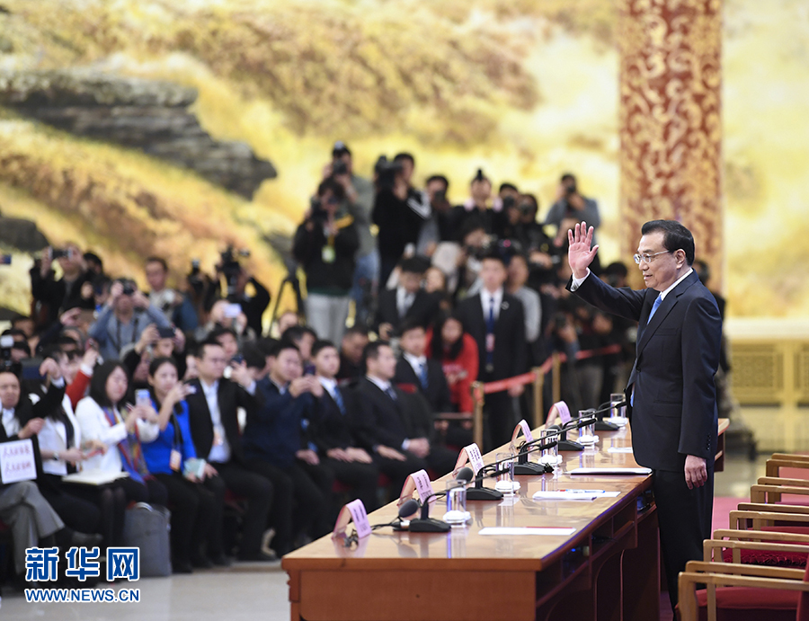 3月15日,國(guó)務(wù)院總理李克強(qiáng)在北京人民大會(huì)堂會(huì)見采訪十三屆全國(guó)人大二次會(huì)議的中外記者并答記者問(wèn)。 新華社記者 殷博古 攝