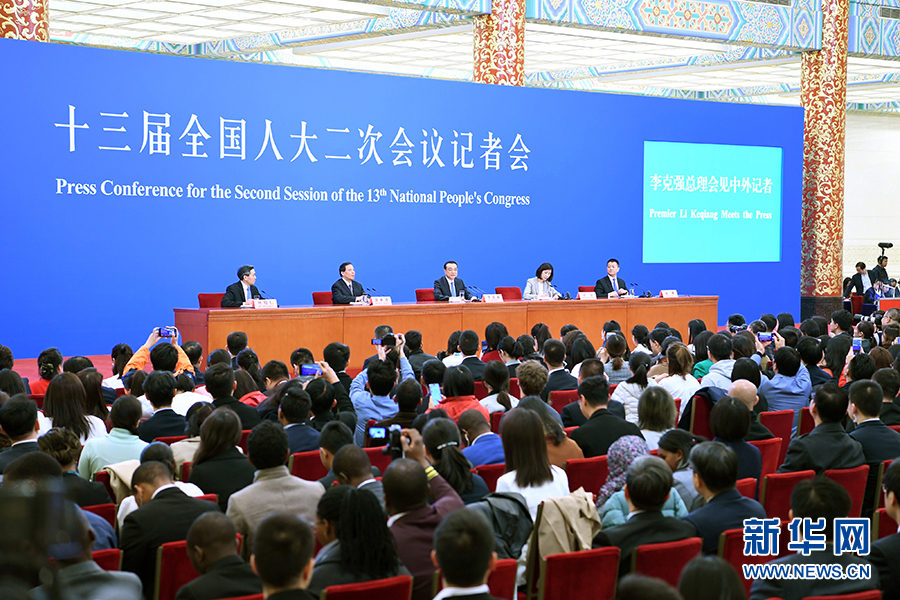 3月15日,國(guó)務(wù)院總理李克強(qiáng)在北京人民大會(huì)堂會(huì)見采訪十三屆全國(guó)人大二次會(huì)議的中外記者并答記者問。 新華社記者 張領(lǐng) 攝