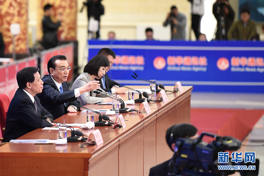 3月15日,國務院總理李克強在北京人民大會堂會見采訪十三屆全國人大二次會議的中外記者并答記者問。 新華社記者 殷博古 攝