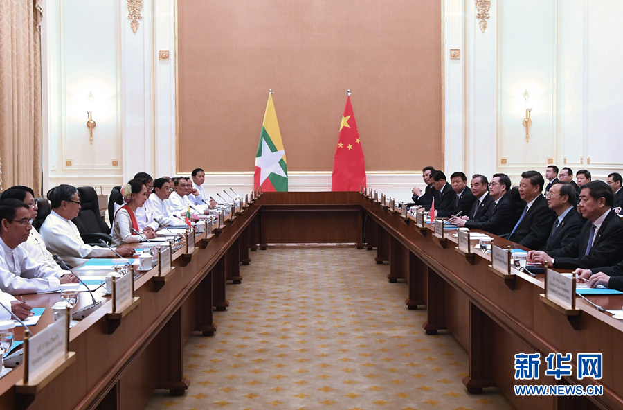 當(dāng)?shù)貢r(shí)間1月18日上午,國(guó)家主席習(xí)近平在內(nèi)比都同緬甸國(guó)務(wù)資政昂山素季舉行正式會(huì)談。 新華社記者 饒愛(ài)民 攝