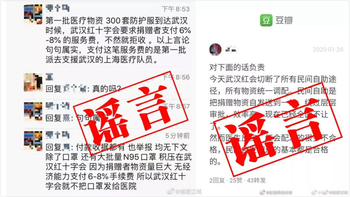 武漢市紅十字會(huì)呼吁廣大網(wǎng)友,不要讓謠言玷污了各界愛心企業(yè)和愛心人士的善意之舉,疫情面前,不信謠、不傳謠,眾志成城,共渡難關(guān)。