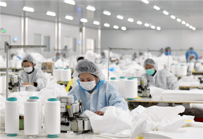 1月28日,在武漢市新洲區(qū)武漢協(xié)卓衛(wèi)生用品有限公司,工人在趕制防護(hù)服,該公司是生產(chǎn)手術(shù)服、防護(hù)服等產(chǎn)品的企業(yè)。 新華社記者 才揚(yáng) 攝