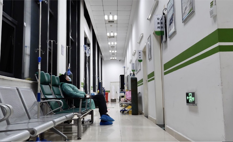 一名患者獨自在走廊輸液。本文圖片 澎湃新聞記者 廖艷