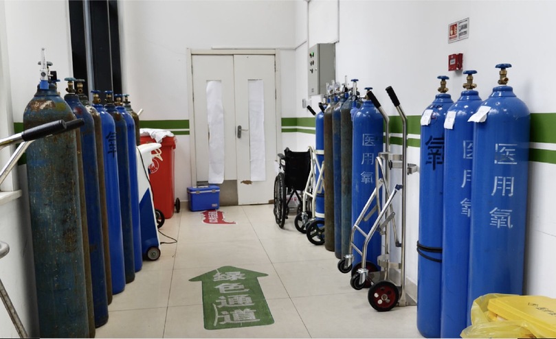 “笑笑,今天的氧氣罐多少個?”“32個?!彼涡π土硪幻o士在走廊盡頭清點氧氣罐后,發(fā)現已經空了6瓶。