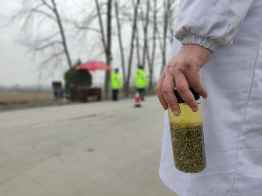 安徽金寨縣漆店村毗鄰湖北麻城,卡點(diǎn)就設(shè)置在省界碑旁。凌晨的大別山腹地,氣溫接近零下10度,紅外線測溫槍在室外無法正常工作。即便自己瑟瑟發(fā)抖,漆學(xué)濤還是把冰冷的測溫槍塞進(jìn)懷中。 “焐一會才能保證準(zhǔn)確?!闭灰瓜聛?,漆學(xué)濤的手已經(jīng)凍得麻木,甚至按不動(dòng)測溫槍的按鍵。