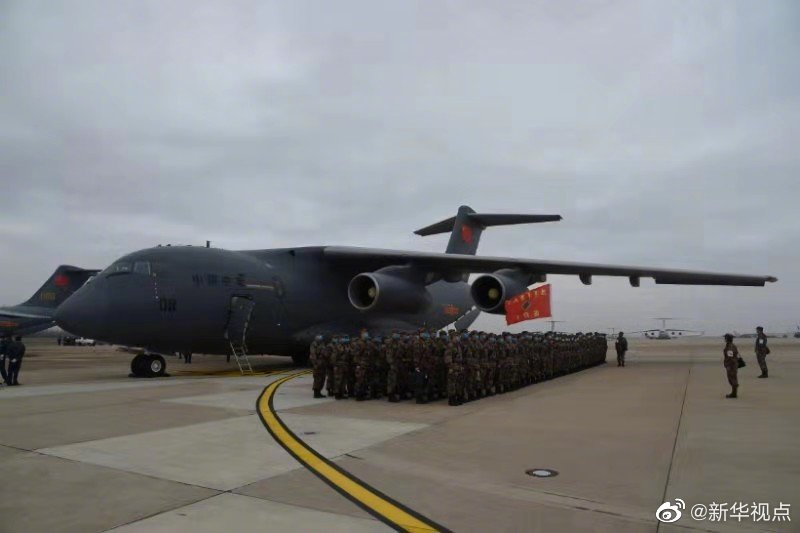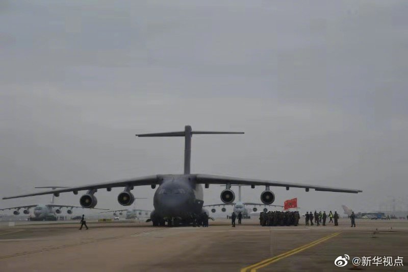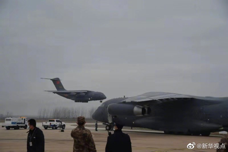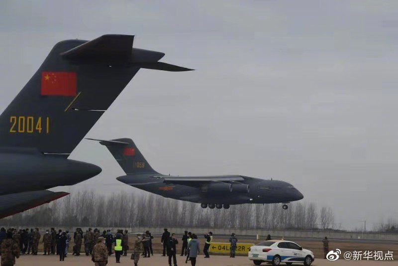 軍隊增派2600名醫(yī)護人員支援武漢抗擊新冠肺炎疫情。國產(chǎn)大型運輸機運-20“胖妞”首次參加非戰(zhàn)爭軍事行動。13日,空軍出動3型11架運輸機多地同步向武漢空運醫(yī)療隊員抵達武漢天河機場。(新華社記者黎云攝) ????