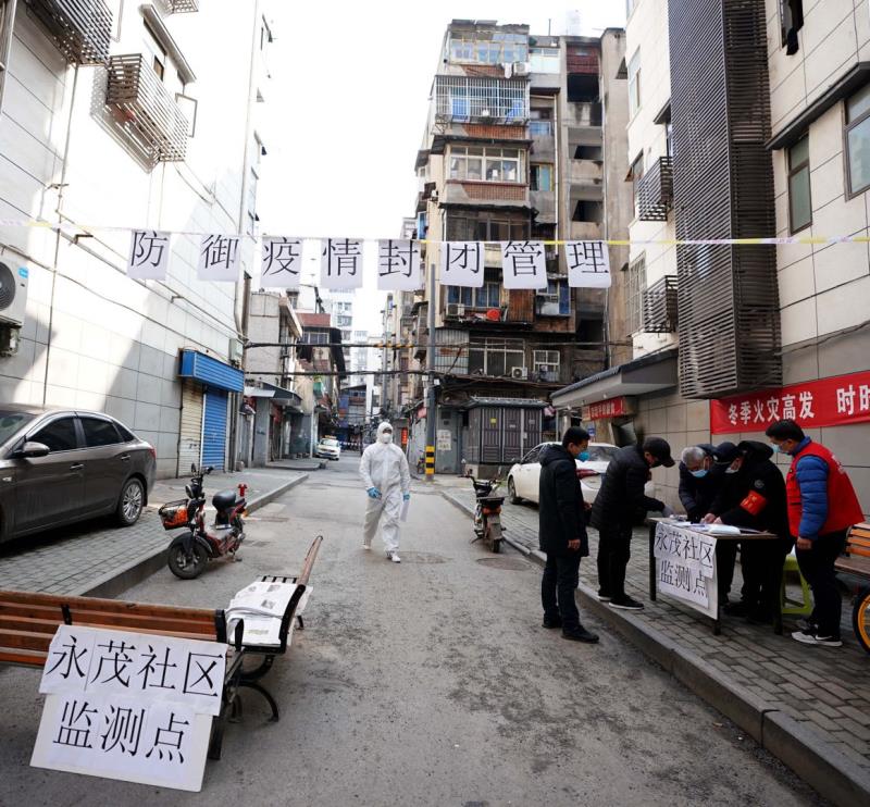 戰(zhàn)“疫”中的漢正街,看不到開門的商戶,很難想像高峰時漢正街的小商品綜合市場曾經有60多個專業(yè)市場、30多萬種商品。街頭行人不多,不時能看到街道、社區(qū)干部做宣傳或是為居民服務。胡亞非介紹說,漢正街轄區(qū)面積1.67平方公里,下轄19個社區(qū)。此次疫情開始正值春節(jié)之前,10多萬流動人口返鄉(xiāng),目前常住居民1000余戶,2.6萬多人口。
