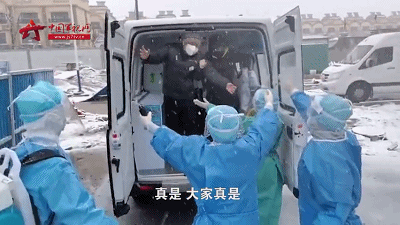 醫(yī)護(hù)人員還一道用裝口罩的盒子