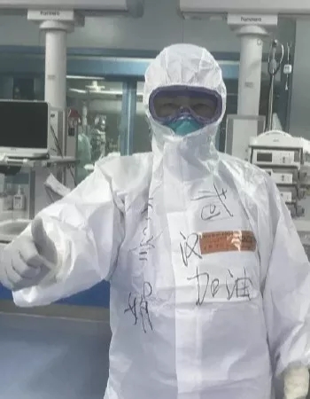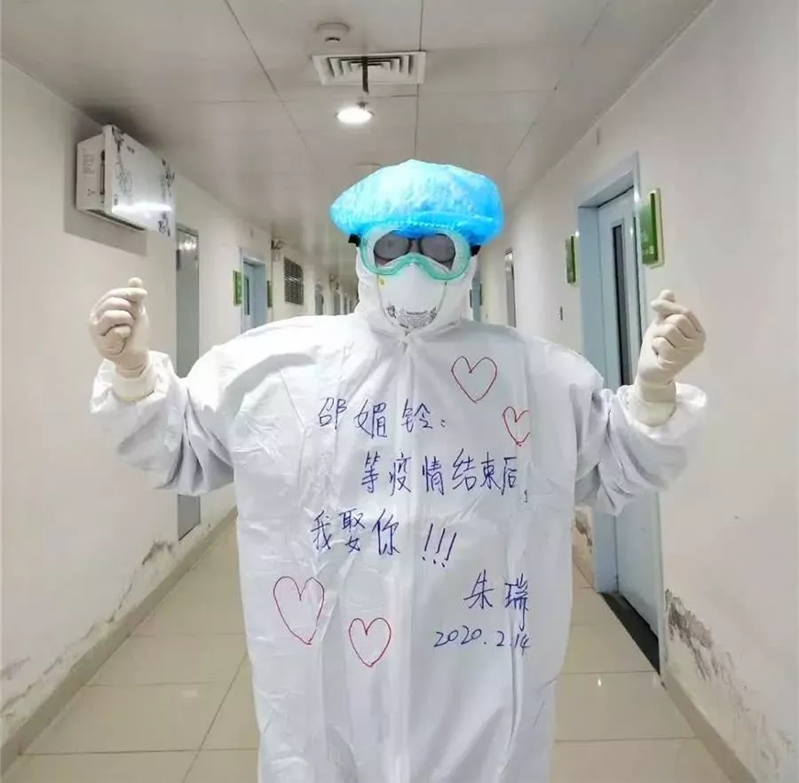 在防護(hù)服上寫(xiě)下了“武漢加油”