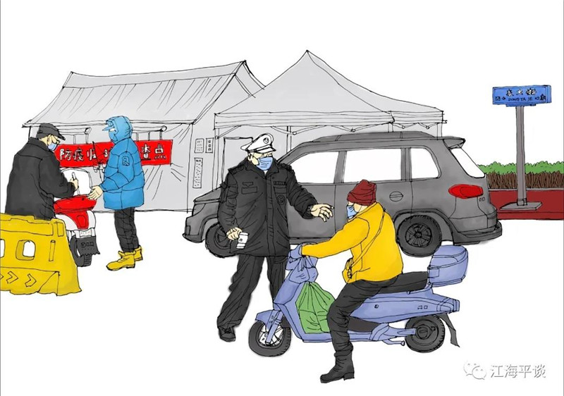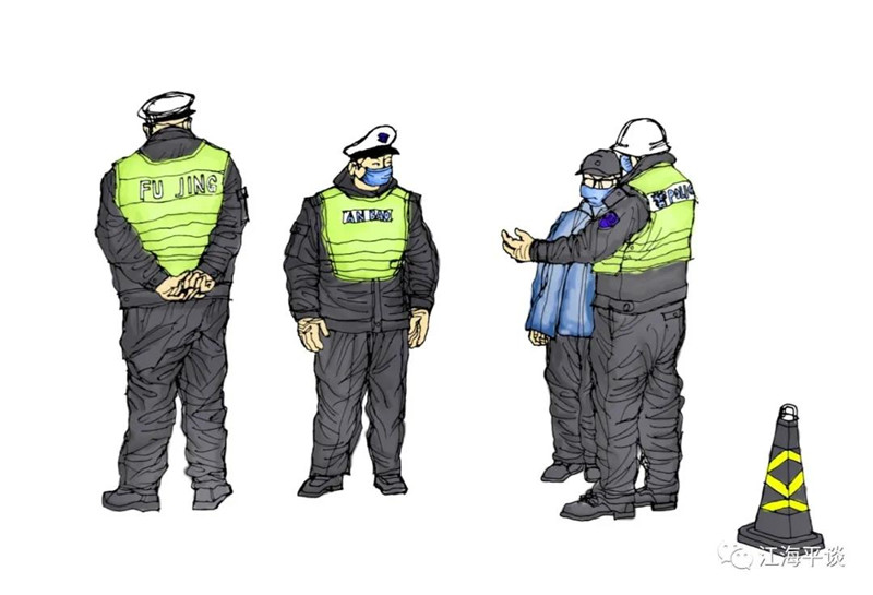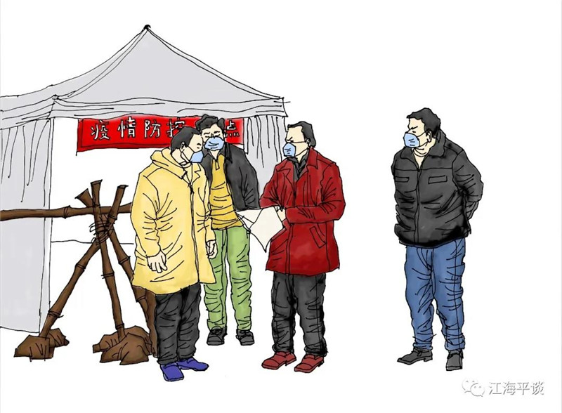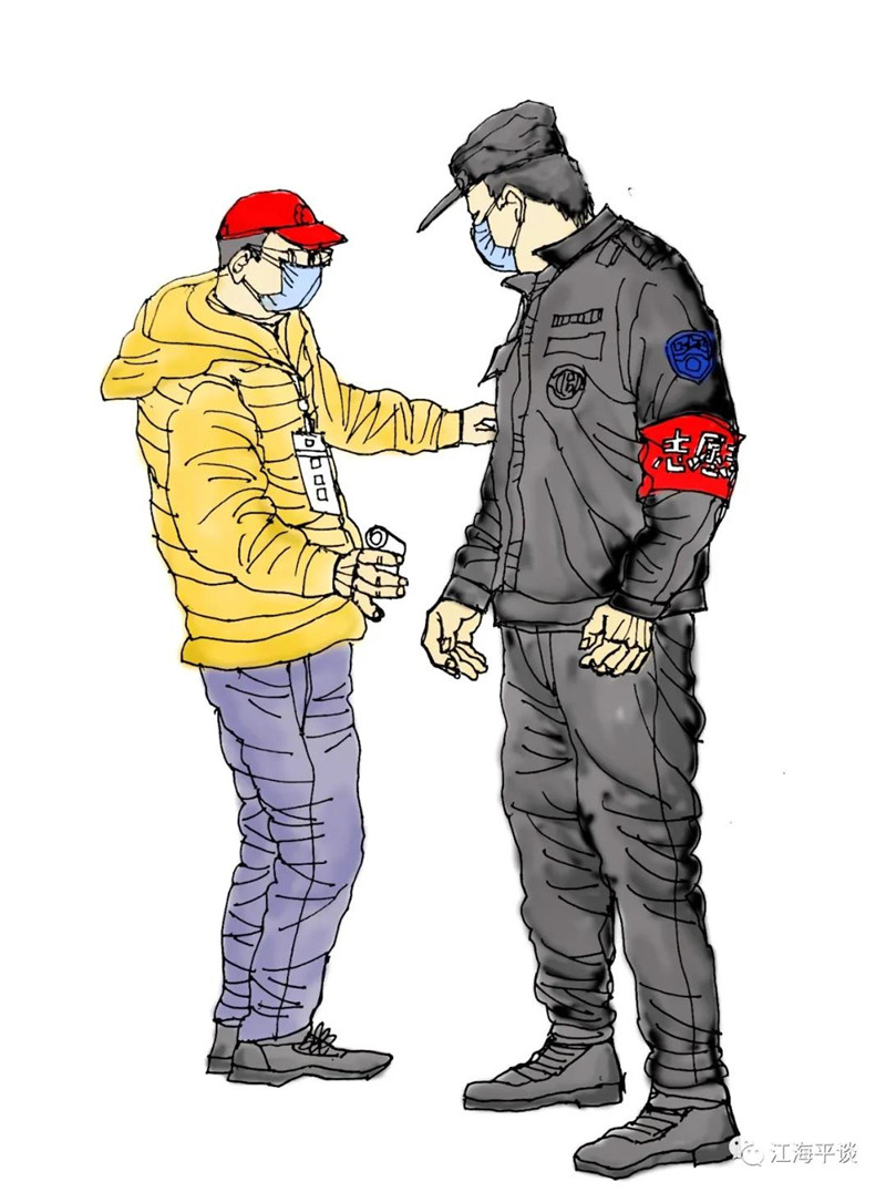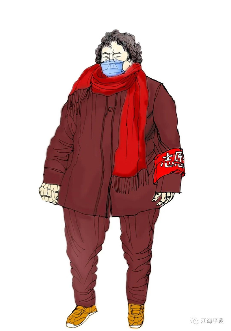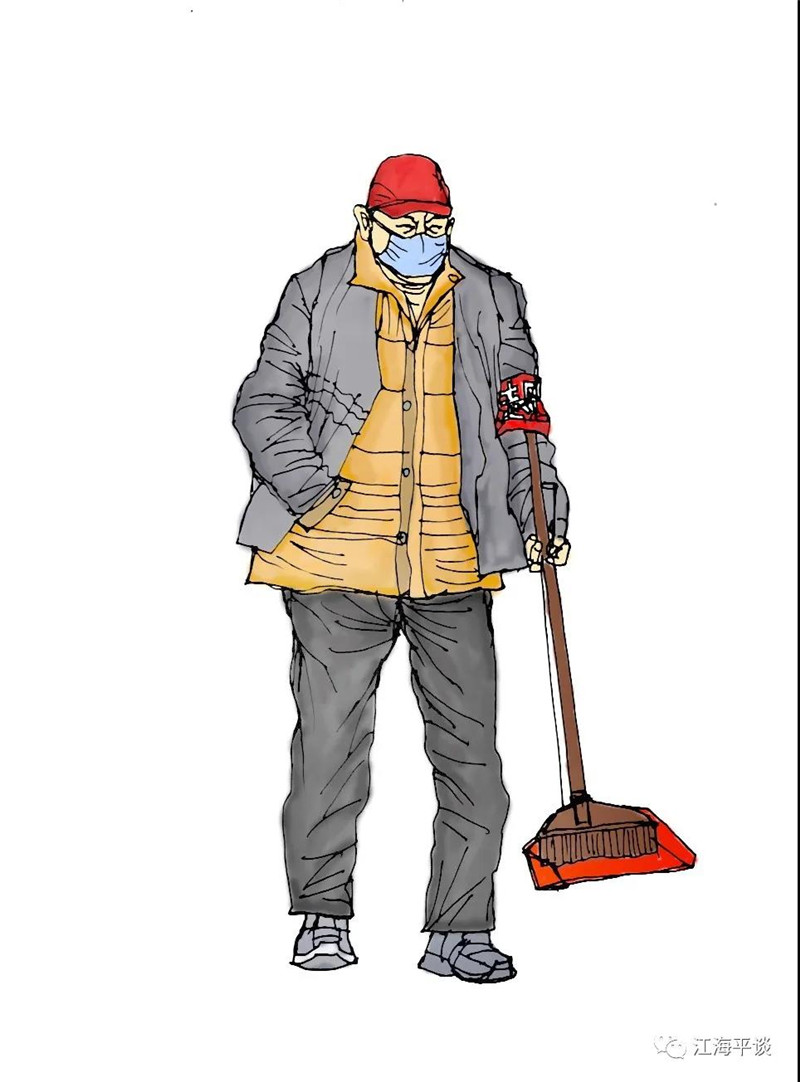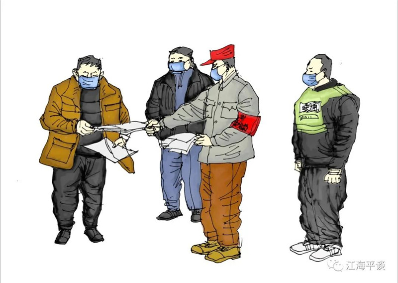 我用速寫的形式,把自己每天看到聽到的最動(dòng)人的故事或場景記錄下來,組成了一幅幅“防控抗疫”的群英圖譜,特別是那些奮戰(zhàn)在一線的廣大醫(yī)務(wù)工作者以及在街頭巷尾,社區(qū)民宅忘我工作、無私奉獻(xiàn)的街道干部和志愿者是我描繪的主要對象。雖然,他們都是普普通通的人,但他們都做出了不平凡的事。他們是這個(gè)時(shí)代真正的英雄,也是這個(gè)時(shí)代最可愛的人!