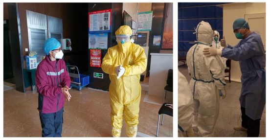 “在高強度的工作之后,許多一線的戰(zhàn)友們無法仔細(xì)精準(zhǔn)地按照院感要求去脫防護用品。例如,有的人忘記要先脫什么;有的人忘記脫口罩不能接觸口罩外面;有的人摘口罩、脫防護服時太快……這個時候就需要我們來提醒、幫助他們?!编崟岳蛘f,“有一次,一位醫(yī)生第一次出艙十分緊張,手一直發(fā)抖,甚至忘了怎么脫防護用品。我安慰她說,不要緊張,慢慢來,我會一步一步提醒你怎么完成。我相信第二次她就不會這樣緊張,能夠淡定出艙。”