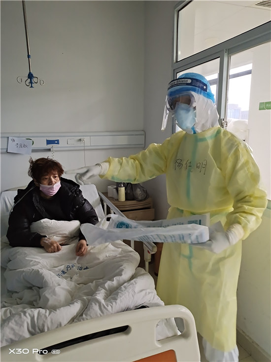 取咽拭子對操作者來說風(fēng)險(xiǎn)較大,他們就陪在年輕醫(yī)生身邊一起操作;高齡患者聽力不好,他們就俯身貼著老人耳朵講話;患者長期住院情緒不佳,他們就拉著患者跳舞、打太極……在他們的影響帶動下,患者積極配合治療,醫(yī)護(hù)人員也學(xué)會了如何與不同的病人溝通交流、如何處理棘手問題。