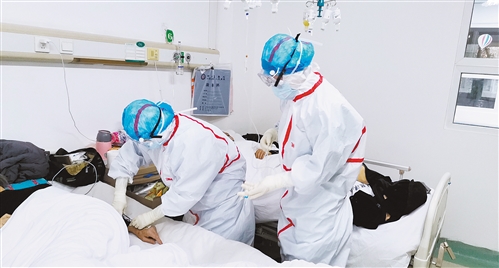 奮戰(zhàn)在武漢金銀潭醫(yī)院南一區(qū)的國家中醫(yī)醫(yī)療隊(duì)大夫們正在為患者診治。(資料照片)