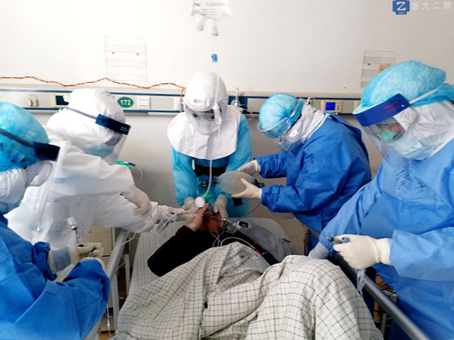 但病毒不會(huì)等你嚴(yán)陣以待再發(fā)動(dòng)進(jìn)攻。病房完成改造的第二天,就有兩名患者出現(xiàn)緊急狀況,需要搶救性氣管插管。這是一場(chǎng)硬仗。操作過程中,患者氣道開放,醫(yī)生距離患者不到20厘米,被感染的風(fēng)險(xiǎn)非常大。整個(gè)過程必須在幾分鐘內(nèi)完成,稍有猶豫,患者就可能面臨生命危險(xiǎn)。