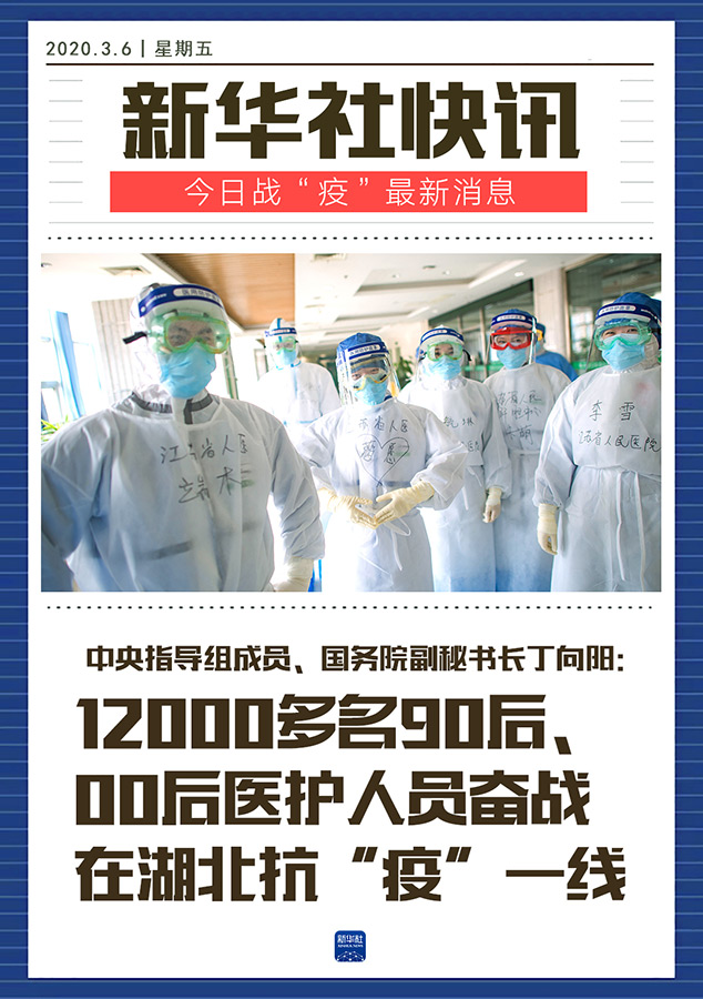 國(guó)務(wù)院新聞辦公室3月6日在湖北武漢舉行新聞發(fā)布會(huì),請(qǐng)中央指導(dǎo)組成員、國(guó)務(wù)院副秘書(shū)長(zhǎng)丁向陽(yáng),中央指導(dǎo)組成員、工業(yè)和信息化部副部長(zhǎng)王江平,中央指導(dǎo)組成員、國(guó)家衛(wèi)生健康委黨組成員、中醫(yī)藥局黨組書(shū)記余艷紅介紹新冠肺炎疫情防控救治進(jìn)展情況,并答記者問(wèn)。