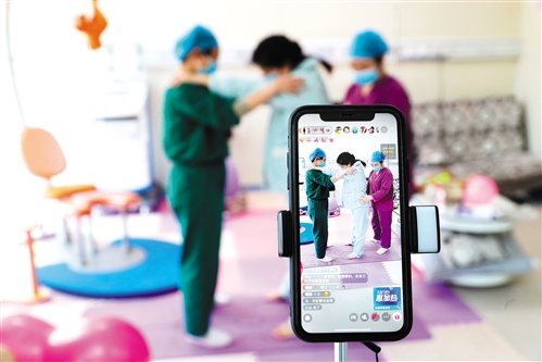 日前,江西撫州東鄉(xiāng)區(qū)人民醫(yī)院孕婦學(xué)校改線下上課為線上授課,醫(yī)生通過(guò)直播為孕媽媽們答疑解惑。 何江華攝(中經(jīng)視覺(jué))