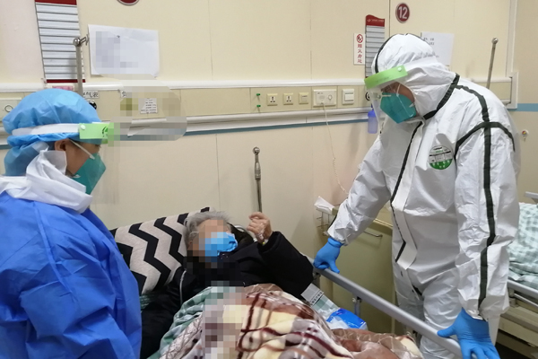 2月12日,全國(guó)人大代表、中央指導(dǎo)組專家組成員、中國(guó)工程院院士、天津中醫(yī)藥大學(xué)校長(zhǎng)張伯禮(前排左三)在湖北武漢江夏方艙醫(yī)院指導(dǎo)工作。
