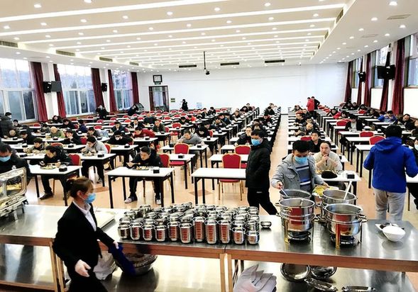 隔離區(qū)每天定時定點消毒,所有工作人員全程佩戴口罩、手套。就餐人員進入餐廳要監(jiān)測體溫,座位實行“考場式”布置——一人一桌,拉大間距,朝向一致,不隨意走動。