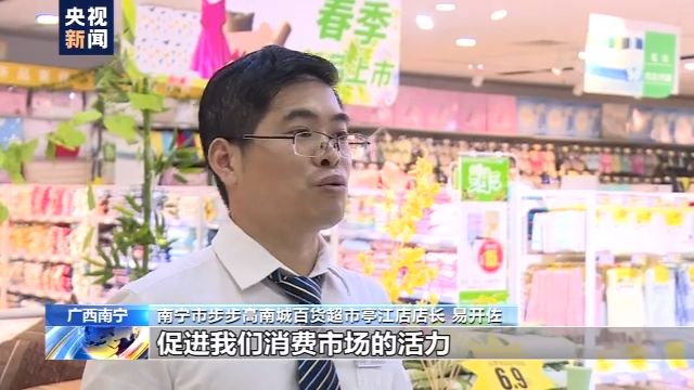 廣西南寧市步步高南城百貨超市亭江店店長 易開佐:通過這個活動,給我們消費者帶來更多的實惠,同時也促進(jìn)我們企業(yè)復(fù)工復(fù)產(chǎn),促進(jìn)我們這個消費市場的活力。