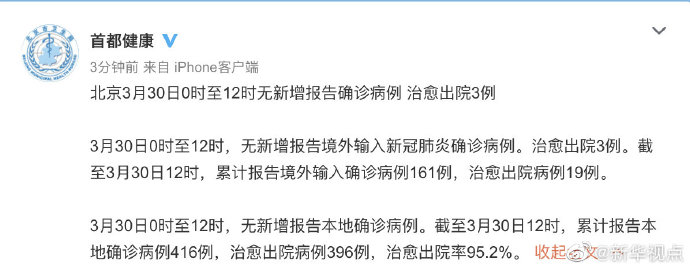 北京3月30日0時(shí)至12時(shí)無新增報(bào)告確診病例 治愈出院3例-新華網(wǎng)