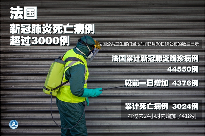 新華社巴黎3月30日電(記者陳晨)法國公共衛(wèi)生部門30日晚公布的數(shù)據(jù)顯示,法國累計(jì)新冠肺炎確診病例44550例,較前一日增加4376例;累計(jì)死亡病例3024例,在過去24小時(shí)內(nèi)增加了418例。