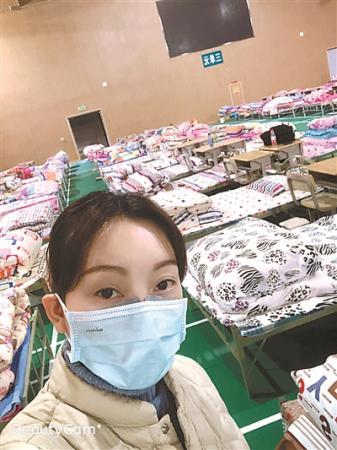 武漢病例暴增期間,各區(qū)的體育館開始改建成為方艙醫(yī)院。開院前大量的準(zhǔn)備工作都需要人手,靳官萍就成為了其中一員?!拔胰サ氖呛樯襟w育館,第一批的三個(gè)方艙醫(yī)院之一?!?8小時(shí)之內(nèi)就要把空曠的體育館改建成擺滿病床的醫(yī)院,志愿者們的壓力也不小。靳官萍負(fù)責(zé)鋪電熱毯、整理床單被套和患者的一人份生活用品,讓每個(gè)病人來(lái)了就能住下。