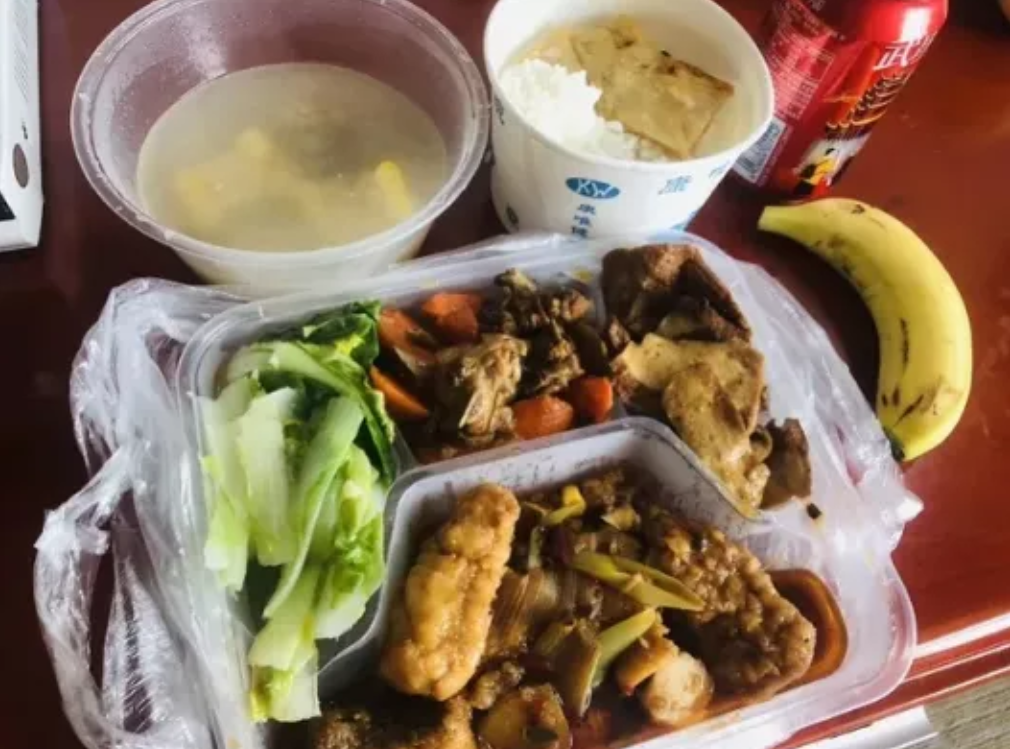 臨近醫(yī)學觀察結束時的一頓豐盛午餐。