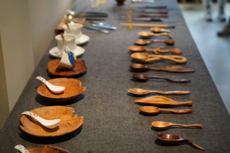 上海浦東新區(qū)唐鎮(zhèn)文化創(chuàng)藝中心內(nèi)的文智工坊創(chuàng)意體驗(yàn)中心展示的各種勺子和筷子。(上海浦東新區(qū)文產(chǎn)促進(jìn)中心供圖)