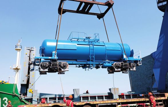 中車齊齊哈爾車輛有限公司出口韓國的濃硫酸罐車準(zhǔn)備啟程發(fā)運(4 月 8 日攝) 宮巖攝 / 本刊