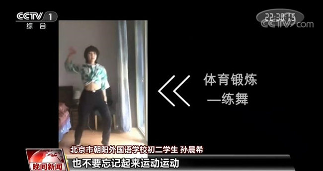 北京市朝陽外國語學(xué)校初二學(xué)生 孫晨希:在學(xué)習(xí)之余,也不要忘記起來運動運動,接下來就是我們的練舞時間啦。