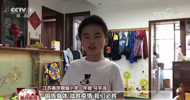 江蘇南京銀城小學(xué)一年級 馬宇鴻:在家我學(xué)到了一些新技能。前滾翻、雙手拍籃球、玩橢圓機……鍛煉身體,戰(zhàn)勝疫情,我們必勝!