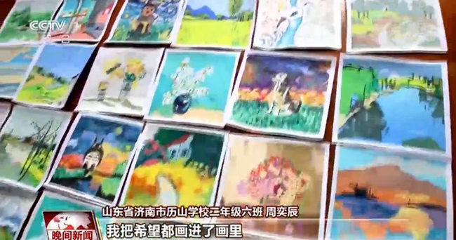 山東省濟南市歷山學(xué)校二年級六班 周奕辰:這是疫情好轉(zhuǎn)后我第一次走進田野里寫生的時候畫的,我的畫里有春天的小草、田野,我把希望都畫進了畫里。