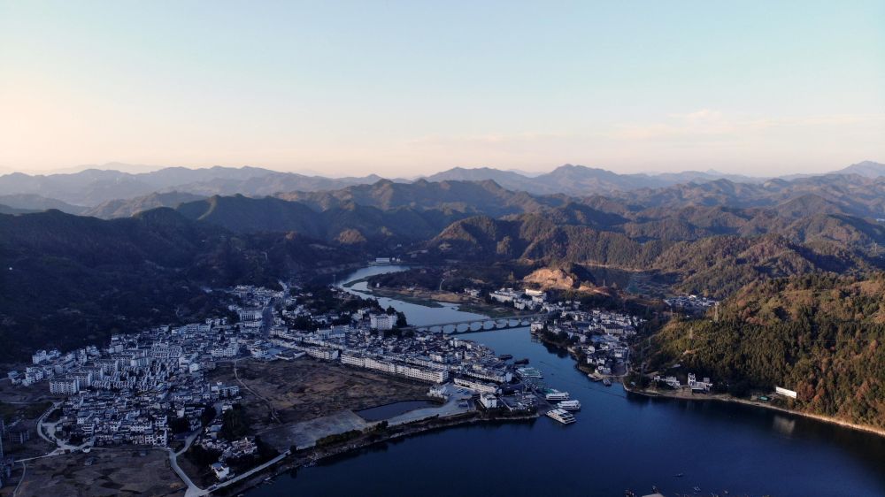 美麗的新安江山水畫廊(2019年11月15日攝,無人機照片)。新華社發(fā)(黃博涵攝)
