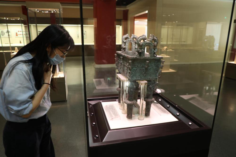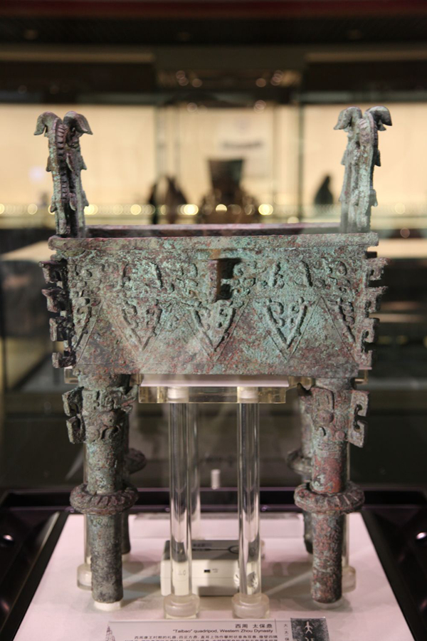 “從形制大小來看,有別于三足圓鼎,這件四足方鼎應(yīng)該是西周早期貴族所用的器物。方鼎高50.7厘米、口徑23.36厘米、重26公斤。方鼎的腹部內(nèi)壁上清晰地鑄有‘大保鑄’三字銘文。據(jù)考證,這‘大?!制鋵?shí)應(yīng)該為‘太?!?,因此這件方鼎被稱作太保鼎。”陳卓說。