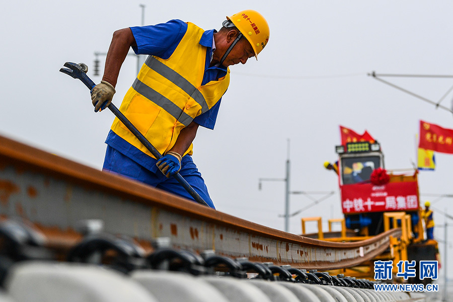 6月12日,中鐵十一局的工程人員在進(jìn)行500米長(zhǎng)軌落槽作業(yè)。 新華社記者 李博 攝(資料圖)
