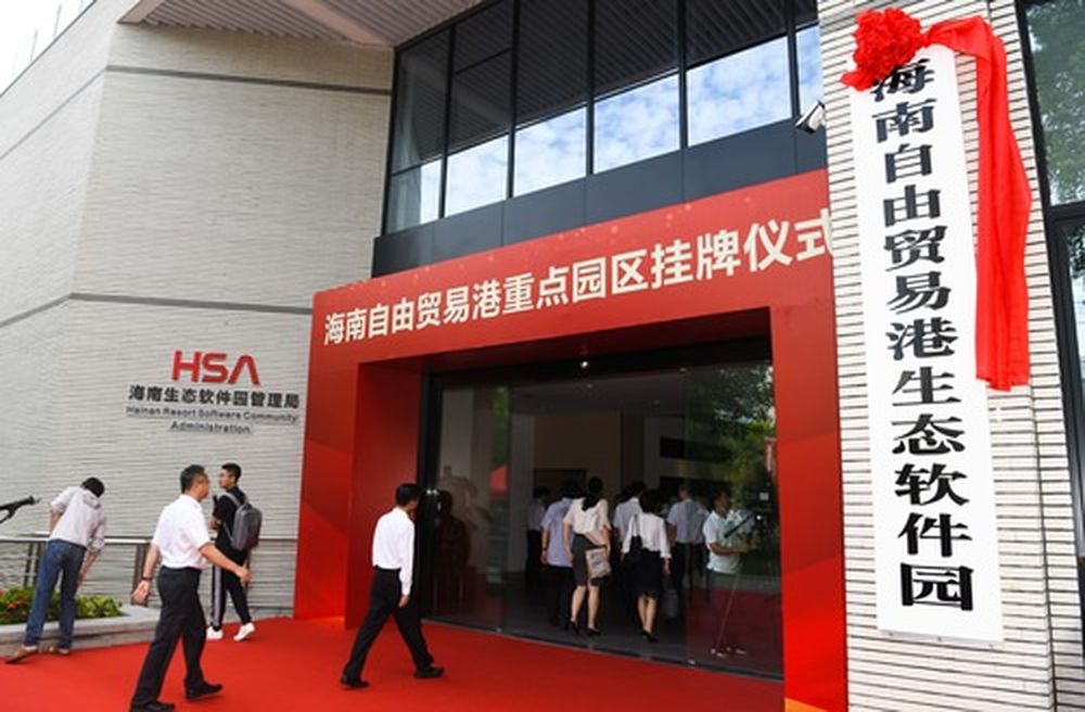 在海南澄邁縣拍攝的海南自由貿(mào)易港生態(tài)軟件園掛牌儀式現(xiàn)場。(新華社記者楊冠宇 攝)