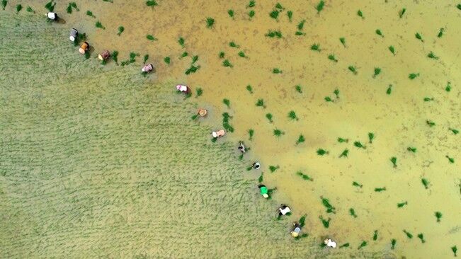 站在堤壩上,記者看到,身穿迷彩服的巡查隊(duì)員一字排開(kāi),緩慢向前推進(jìn),隊(duì)員們每人手持一根長(zhǎng)長(zhǎng)的竹竿撥開(kāi)雜草,仔細(xì)觀(guān)察地面是否有泡泉或管涌出現(xiàn)。